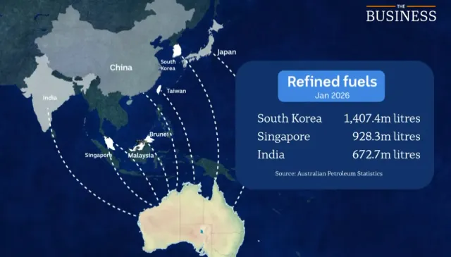 그래서 원유 LNG 수출하는 호주가 막대한 양의 정제된 휘발유 디젤등 석유제품을 한국등 아시아에서 수입해옴