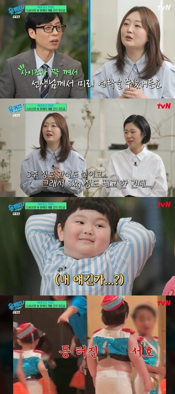 지난 25일 방송된 tvN 예능 프로그램 유 퀴즈 온 더 블럭 336회에는 귀여운 춤사위로 전 국민의 미소를 자아낸 서호와 서하가 게스트로 등장했다. 이날 방송에서 서호의 어머니는 영상 속 의상과 관련해 꼭 해명하고 싶은 부분이 있다며 운을 떼 시청자들의 이목을 집중시켰다.