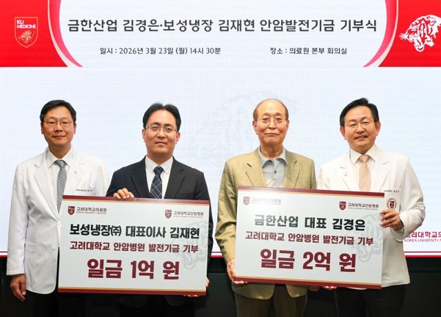 고려대학교의료원은 금한산업 김경은 대표와 보성냉장(주) 김재현 대표이사가 고려대 안암병원 발전을 위한 기금 3억 원을 기부했다고 밝혔다.