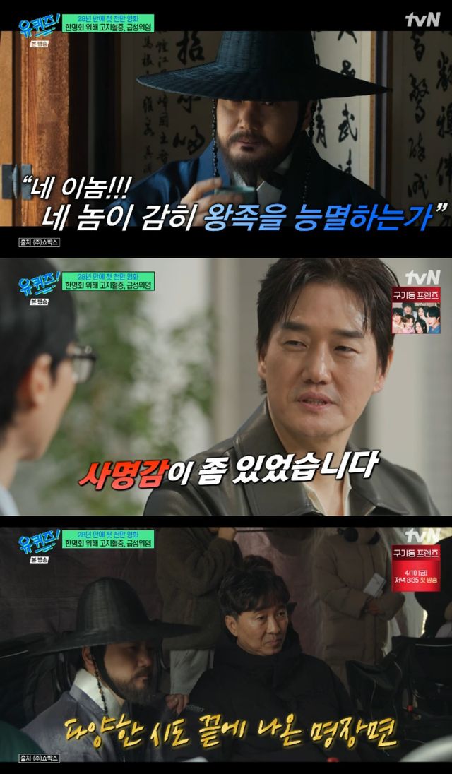 (엑스포츠뉴스 오수정 기자) '유퀴즈'에서 유지태가 '왕과 사는 남자' 한명회 역할을 연기한 것을 언급했다.