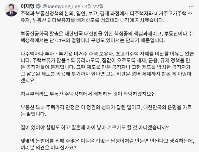 김용범 정책실장과 하준경 경제성장수석도 부동산 정책에 관여하지만 다주택자는 아니었다. 김 실장은 서울 서초구 서초동 서초래미안 아파트(111㎡, 15억 6785만원) 1채를 보유했다. 하 수석은 경기 성남시 분당구 운중동 산운마을(83㎡)에 전세(보증금 7억원)로 거주 중인 무주택자다.