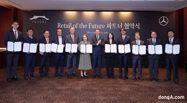 벤츠코리아가 11개 딜러사와 고객 중심의 새로운 차량 판매 방식, ‘리테일 오브 더 퓨처’ 협약식을 개최했다. 사진 벤츠코리아 제공.