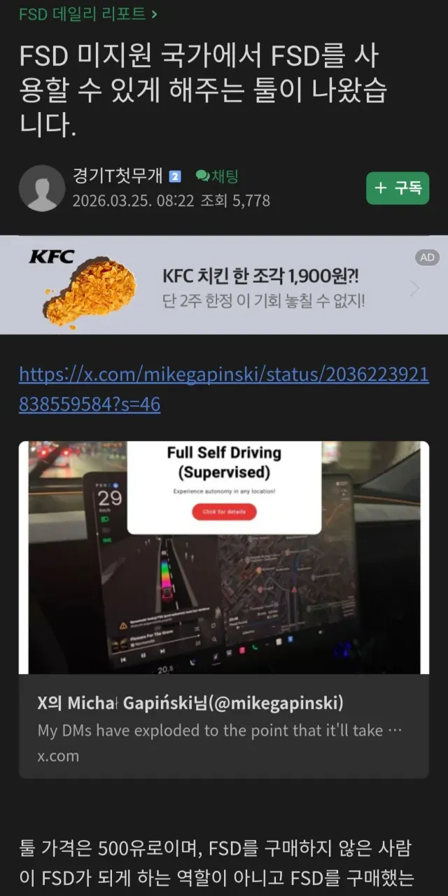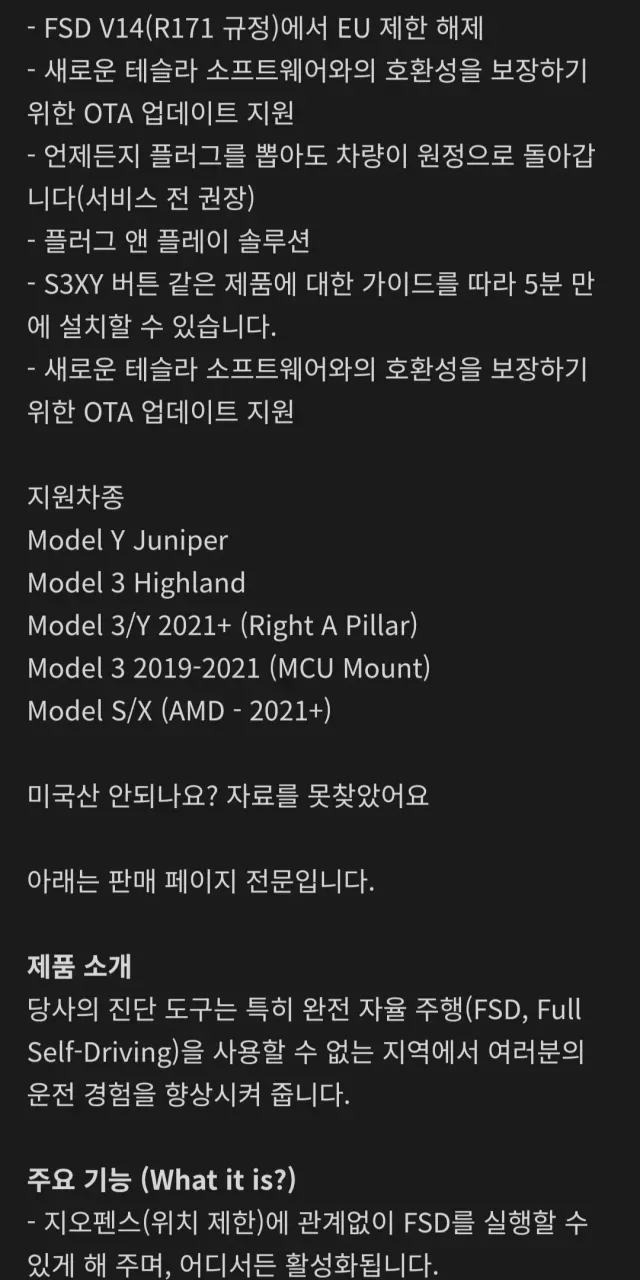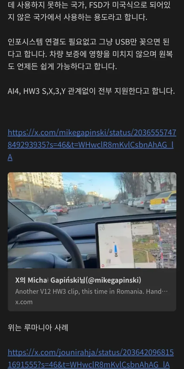 선요약 : 한국에 있는 중국산 Y,3 차량들도 저거 쓰면 fsd 사용 가능.