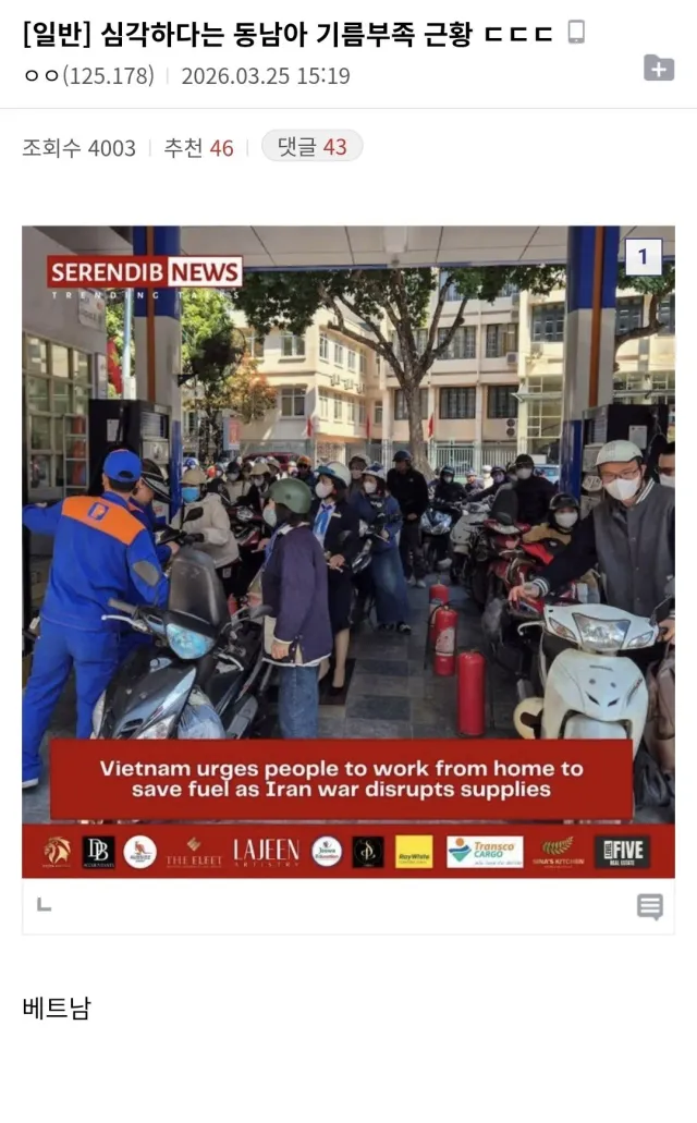 현재 심각하다는 동남아 기름 부족 근황
