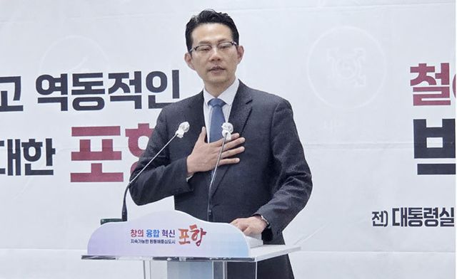 박 후보는 "그 말 한마디가 단순한 개인 고민이 아닌 지금 포항이 마주한 현실이라고 느꼈다"며 "저 역시 세 아이를 키우는 아버지로서 그 말이 더욱 무겁게 다가왔고, 이는 일자리, 의료, 교육까지 삶의 기본이 흔들리고 있다는 이야기였다. 그래서 저는 포항을 떠나는 도시가 아니라 도시 돌아오고 싶은 도시로 바꾸기 위해 그리고 그 책임을 지기 위해 이 자리에 섰다"며 출마 의지를 표명했다.