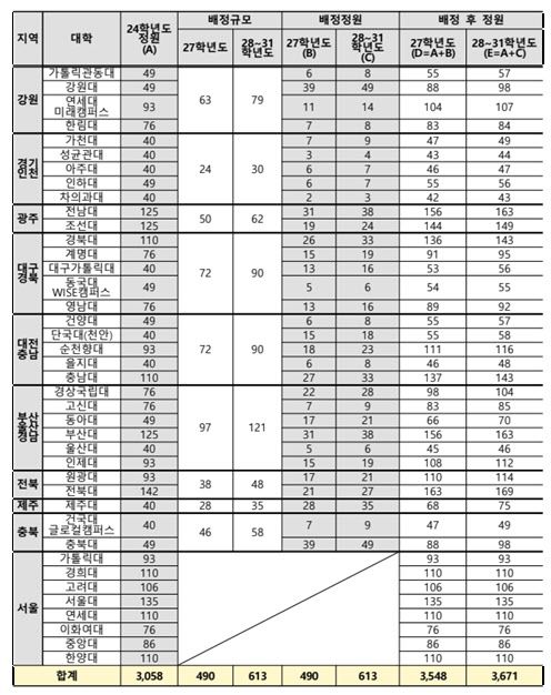교육부는 서울 외 지역 의대의 2027~2031학년도 학생 정원을 통지했다고 26일 밝혔다.