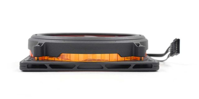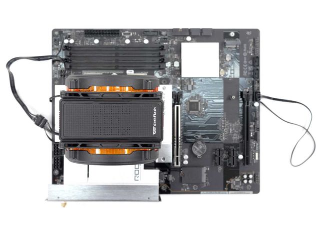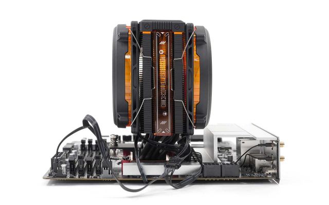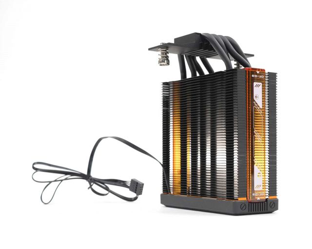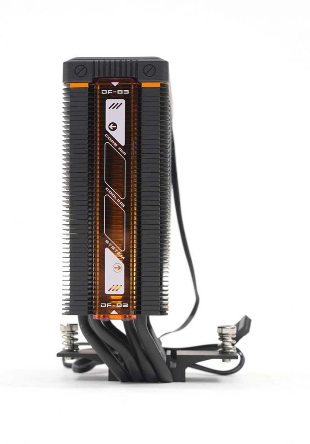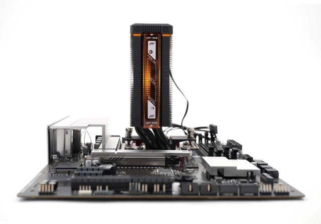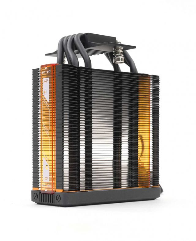히트싱크의 양 측면에도 독특한 오렌지색의 반투명 커버가 장착된다. 쿨러의 ARGB가 빛을 내면, 이 커버가 동조하며 조명 효과를 극대화한다. 마치 PCB 기판을 보고 있는 듯한 프린팅이 이색적인 분위기를 연출하는 데 한몫한다.