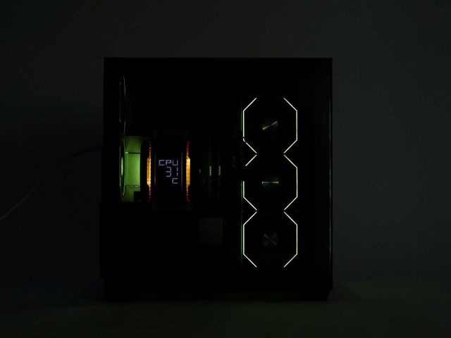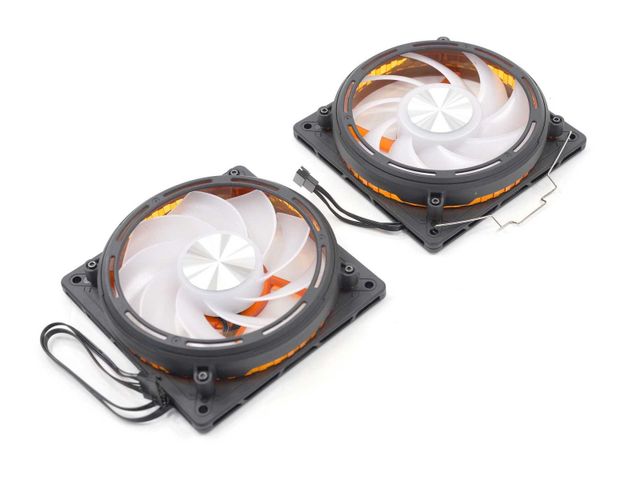 둥근 팬 프레임을 적용한 2개의 120mm 쿨링팬 역시도 독특하기는 매한가지. 장착을 위한 하단부엔 사각 프레임을 적용하고, 블레이드가 위치한 상단엔 원형 프레임을 각각 적용해 옛날 감성인 듯 아닌 듯 묘한 분위기를 연출한다. 블레이드 측면에는 투명한 프레임을 추가로 적용해 ARGB 적용 시 다양한 시각적 효과가 곁들여지도록 고안했다.