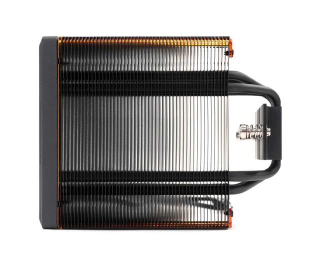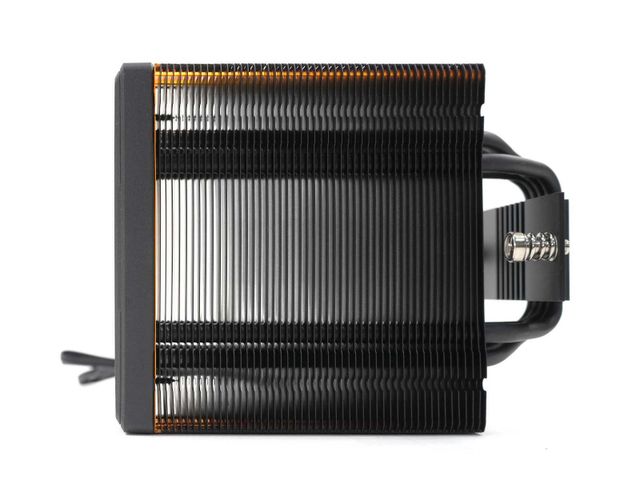쿨러의 전체 높이는 155mm이다. 히트싱크를 효과적으로 키웠지만, 높이를 최대한 억제해 대다수 케이스에 적용하기에 어려움 없는 높이로 조절했다. 아울러 전면 쿨링팬과 후면 쿨링팬의 장착 높이도 살짝 다르다. 바로 옆에 메모리가 장착되는 전면 쿨링팬은 살짝 더 높은 위치에 장착된다. 이를 통해 히트싱크가 적용된 튜닝 메모리와의 호환성을 높였다.