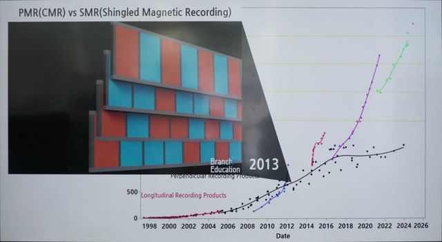 빠른 응답속도를 위해 반도체에 전하를 저장하는 방식이 SSD라면, 더 많은 데이터 저장을 위해 반도체에 자기기록 장치를 극도로 정교하게 구현해서 디스크에 기록하는 기술이 HDD라는 설명이다.