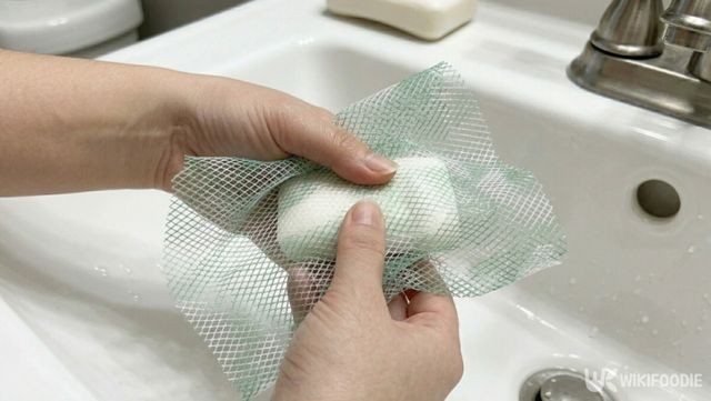 손바닥 크기로 자른 샤워타월은 작아서 쓰기 불편했던 비누 조각들을 모으는 도구로 활용할 수 있다. 비누를 거의 다 쓰고 나면 크기가 너무 작아져서 손에서 자꾸 미끄러지거나 거품이 잘 나지 않아 버리게 되는 경우가 많다.