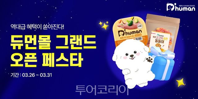 듀먼 자연화식은 그레이드 등급 원료를 100% 사용하고, 산화방지제와 착색제 등 합성 첨가물을 배제한 제품이다. 구성은 총 10종으로, 오리지널 6종과 기능성 4종으로 나뉜다. 이번 행사에서는 화식 50팩을 50g 팩당 790원, 100g 팩당 1100원에 판매했다. 여기에 앱 설치 고객에게는 3000원 할인 쿠폰, 반려동물 정보 등록 시 2000원 할인 쿠폰을 제공하고, 5만원·7만원·10만원 이상 구매 고객에게는 각각 ‘초유단백 챱챱펫밀크 눈가반짝’, ‘플레이츄 덴탈껌 치즈’, ‘고구마 치킨 돌돌이’를 1팩씩 증정한다.