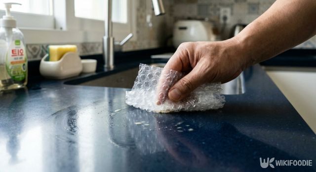 에어캡 조각에 주방 세제를 묻히고 물을 살짝 적셔 비비면, 공기주머니 사이사이로 공기가 들어가면서 풍성한 거품이 만들어진다. 일반 수세미보다 거품이 잘 나기 때문에 적은 양의 세제로도 싱크대 전체를 깨끗하게 닦아낼 수 있다.
