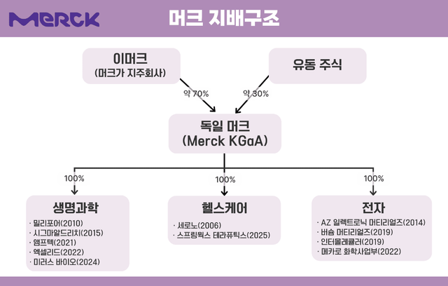 소유와 경영이 철저하게 분리된 지배구조는 머크의 가장 큰 경쟁력으로 꼽힌다. 단기 실적에 흔들리지 않고 장기 투자와 전략적 의사결정을 지속할 수 있는 환경이 조성되기 때문이다. 실제 머크는 2000년대 이후 공격적인 인수합병(M&A)을 통해 사업 포트폴리오를 재편하며 성장해왔다. 2006년 세로노 인수를 시작으로 2010년 밀리포어, 2019년 버슘 머티리얼즈 등을 잇따라 인수하며 생명과학과 반도체 소재 분야를 핵심 사업으로 키웠다.