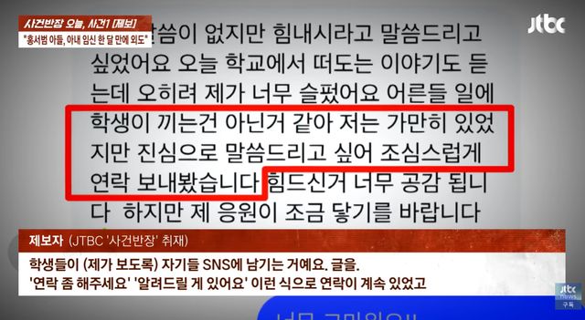 26일 방송된 JTBC '사건반장'에서는 홍서범, 조갑경의 아들 A씨의 불륜 의혹과 관련, 아내 B씨가 직접 입을 열었다.