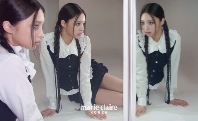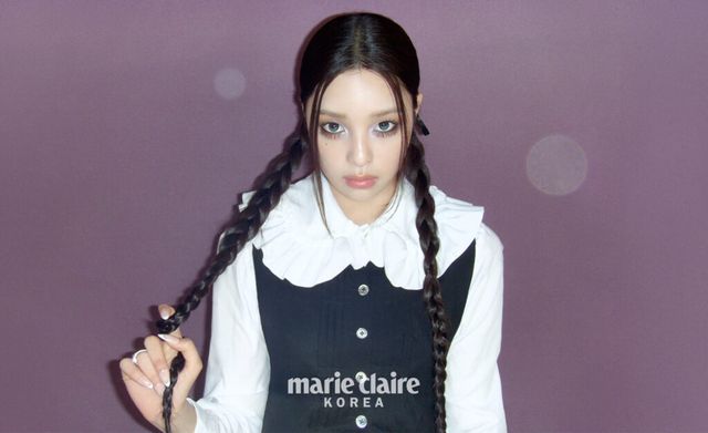 <웬즈데이>의 주인공 웬즈데이 아담스가 떠오르게 하는 기묘하고 미스터리한 분위기 속에서 나현의 소녀 같은 얼굴을 포착했다.