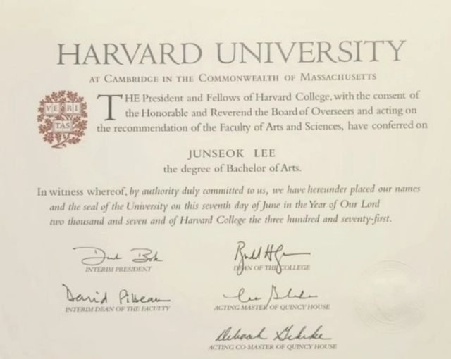 이준석 개혁신당 대표가 SNS에 공개한 하버드 대학교 졸업장 / 이준석 대표 SNS