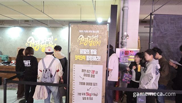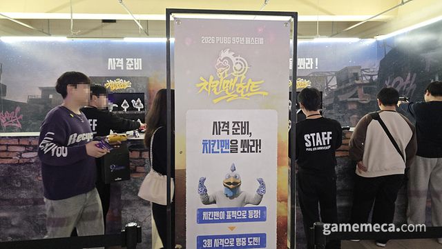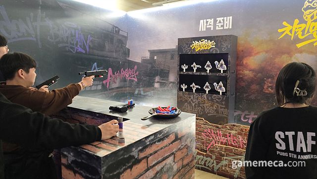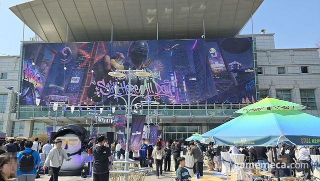 그런 배틀그라운드가 9주년 기념 팬 행사 '스틸 히어 올 데이(Still Here All Day)'를 고려대학교 화정체육관에서 열었다. 28일 오후 1시부터 5시까지는 체험형 부스와 미니게임으로 구성된 체험 프로그램이 메인으로 진행됐다. 지하 주차장은 핵심 체험존으로 구성됐고, 2층 야외에서는 각종 음식을 먹고 아트와 캐릭터를 관람할 수 있었다. 작년 8주년 체험 행사도 여러 미니게임이 알차게 준비됐는데, 9주년은 규모를 더 키우고 행사 역시 더 세밀하게 구성했다. 그 때문인지 수많은 팬들이 화정체육관을 찾았다.