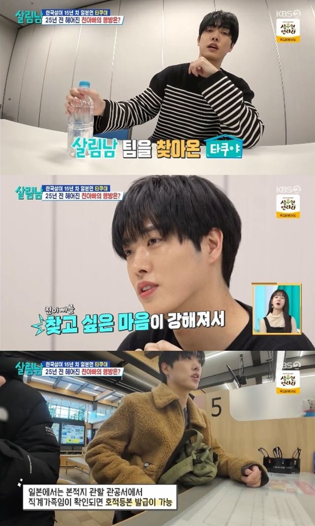 28일 방송된 KBS 2TV '살림하는 남자들 시즌2'에서는 타쿠야가 친아버지를 찾아나서는 모습이 전파를 탔다.