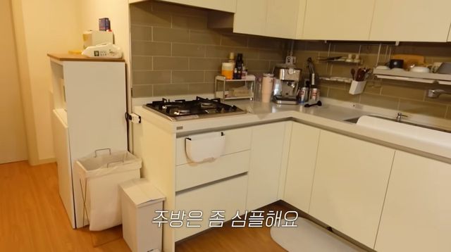 거실 및 업무 공간 거실에는 전신 거울과 운동 존을 마련해 자기관리에 진심인 면모를 보였다. 테이블에서는 평소 독서와 필기를 즐기는 그의 지적인 일상을 엿볼 수 있었다. 주방은 심플하면서도 따뜻한 분위기를 자아냈다.