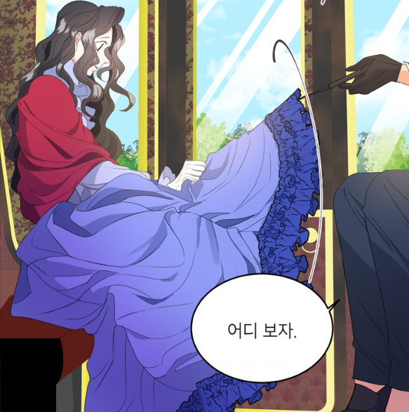 마차에서 내린 에보니는 무거운 짐가방 때문에