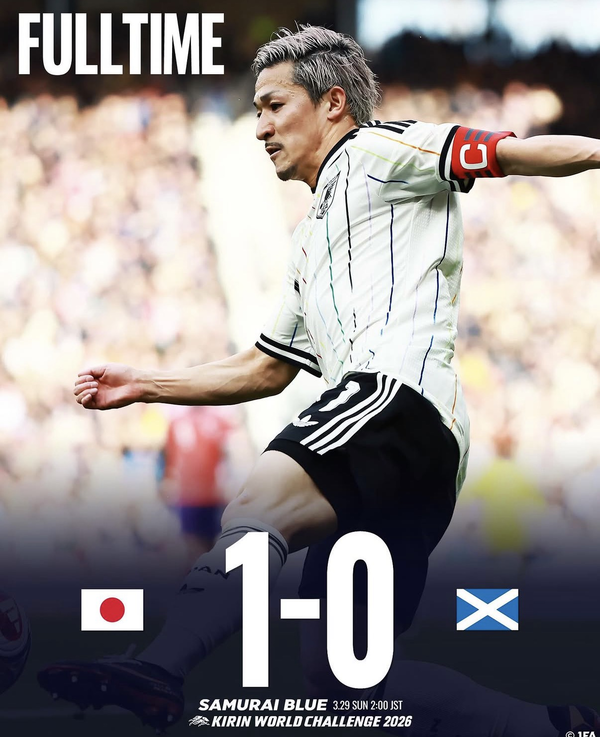29일(한국시간) 스코틀랜드 글래스고의 햄던 파크에서 3월 국가대표 친선경기를 치른 일본이 스코틀랜드에 1-0으로 이겼다. 이 경기 전 일본은 국제축구연맹(FIFA) 랭킹 19위, 스코틀랜드는 38위였다. 경기 후에는 일본이 18위로 올라가고 스코틀랜드가 40위로 내려갔다.