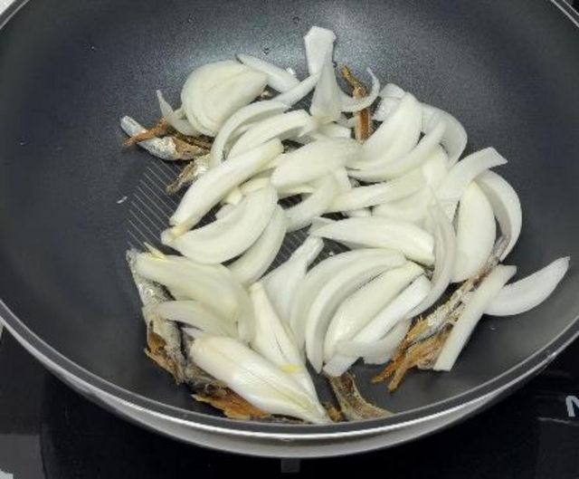 바닥에 멸치와 양파를 먼저 깔기. / 유튜브 '비타민 밥상'