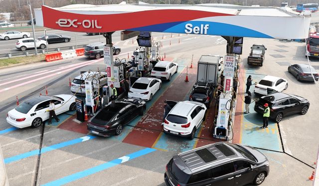 석유 제품 2차 최고 가격제가 시행된 첫날인 지난 27일 서울 서초구 만남의광장 주유소에서 운전자들이 주유를 하고 있는 모습(자료사진). 2026.3.27 ⓒ 뉴스1