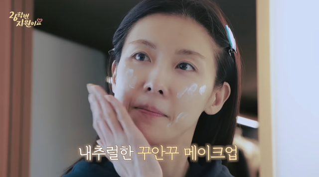 기초 메이크업도 탄탄하게 올렸다. 하지원은 피부타입이 악건성이라며 “팩을 엄청나게 한다. 아침부터 도배를 해야 한다”라고 말했다.