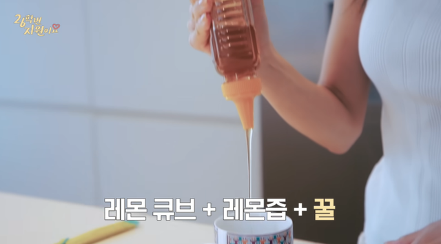 먼저 하지원은 주방으로 향해 냉장고에서 레몬을 꺼냈다. 그가 공개한 냉동실에는 레몬을 큐브 모양으로 소분해 얼려놓은 통이 가득했고, 하지원은 레몬 한조각을 꺼내 레몬즙과 따뜻한 물, 꿀을 넣은 레몬 꿀차를 완성했다. 하지원은 “매일 아침 15년째 마신다”며 꾸준한 관리 비결이라고 밝혔다.