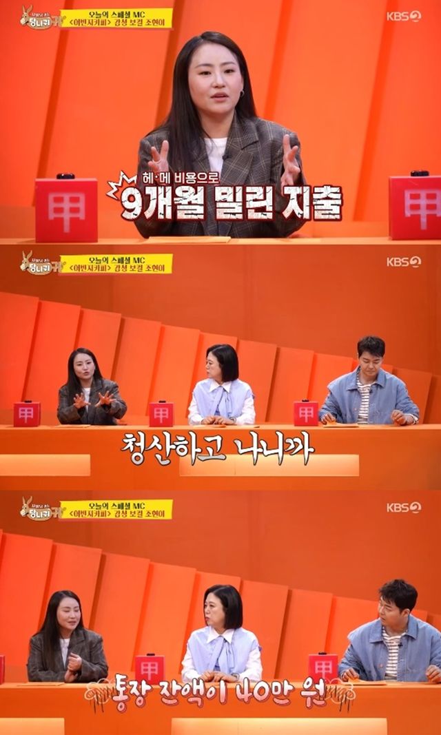 조현아는 빚졌던 금액을 청산하고 나니 통장에 40만 원이 남았지만 마음은 좋았다고 했다.