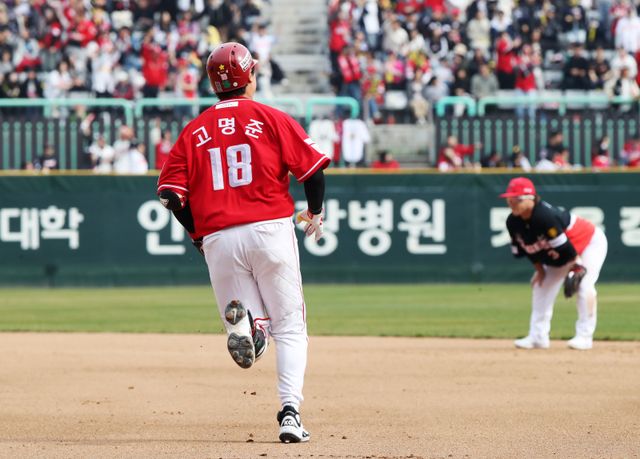 고명준은 연타석 홈런까지 폭발시켰다. 9-2로 크게 앞선 4회 말 1사 주자 없는 상황에서 황동하의 3구째 직구를 받아쳐 왼쪽 펜스를 넘겼다. 타격 직후 홈런임을 직감할 수 있는 큼지막한 타구로 버거리 120m. 올 시즌 KBO리그에서 나온 첫 번째 연타석 홈런(개인 통산 2호)이자 사실상 KIA의 추격 의지를 꺾는 쐐기포이기도 했다.