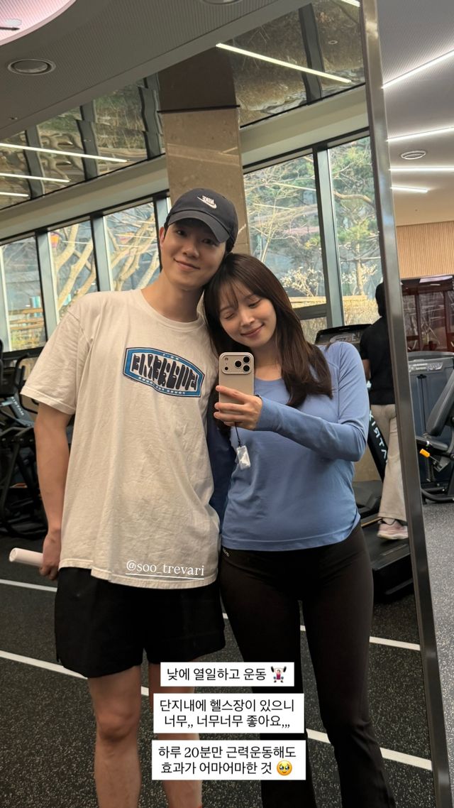 공개된 사진 속 김지영은 남편 윤수영과 함께 헬스장에서 다정한 셀카를 남기고 있다. 두 사람은 편안한 운동복 차림으로 자연스러운 분위기를 자아내며 신혼부부다운 케미를 드러냈다. 특히 또 다른 사진에서는 김지영의 D라인이 드러나 눈길을 끌었다.