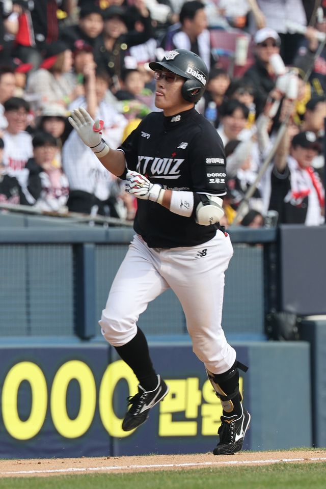 첫 타석부터 허경민의 활약이 빛났다. KT는 1회 안현민의 1타점 2루타로 선취점을 올린 후, 장성우의 우중간 2루타로 2-0을 만들었다. 이어 김상수의 우전 안타로 주자는 1, 3루가 됐다.