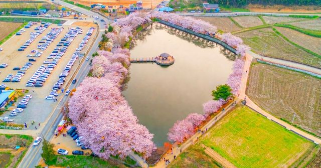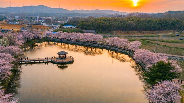 골정지의 봄철 풍경도 빼놓을 수 없다. 저수지 둘레를 따라 심어진 벚나무들이 수면 위로 가지를 늘어뜨려 환상적인 풍경을 연출한다. 충남 지역은 보통 4월 초에 개화가 시작되며, 올해는 다음 달 5~12일 사이로 만개 시기가 예상돼 있어 방문하기 가장 좋다. 특히 밤에는 화려한 조명이 켜져 정자와 벚꽃이 어우러진 야경이 압도적이다.