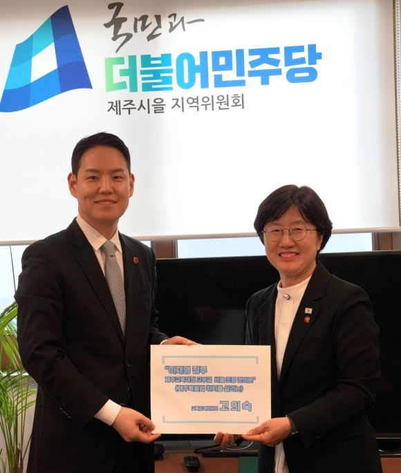 [한라일보] 6·3 지방선거 제주도교육감 선거에 출마한 고의숙 예비후보는 지난 28일 김한규 국회의원(더불어민주당, 제주시을)을 만나 제주 교육재정 확충을 위한 법 개정을 제안했다.