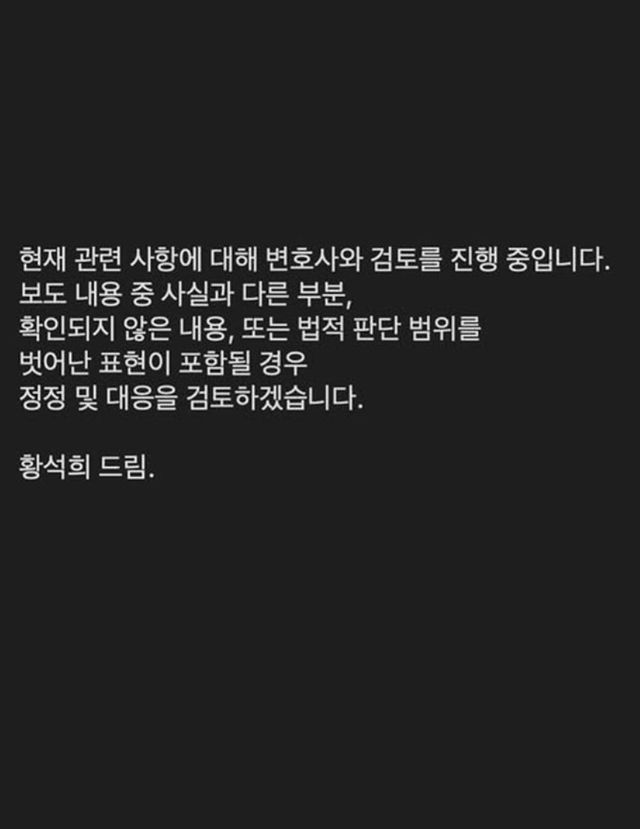 이와 관련, 황석희는 "관련 사항에 대해 변호사와 검토를 진행 중"이라며 "확인되지 않은 내용, 또는 법적 판단 범위를 벗어난 표현이 포함될 경우 정정 및 대응을 검토하겠다"는 입장을 직접 밝혔다.