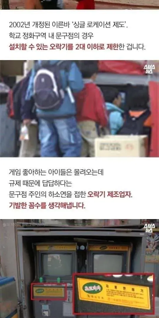 규제 때문에 오락기가 아니라, 과자 자판기라 하고 설치함