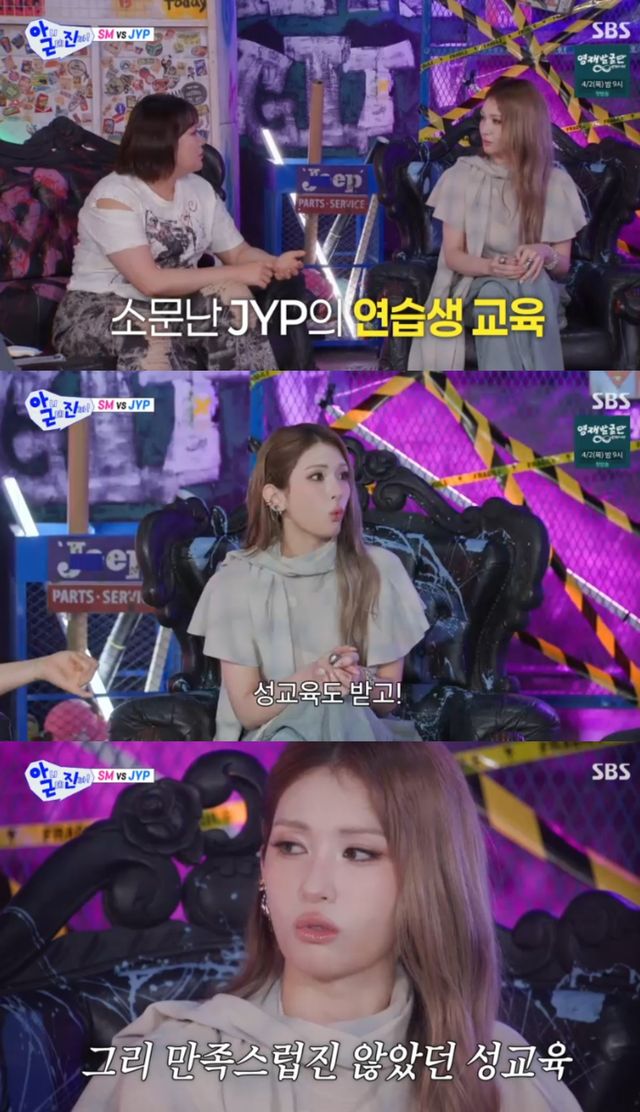 이에 전소미는 "성교육이다. 저는 집에서 부모님께 자세하게 성교육을 받았다. 그런 사람이 볼 때 JYP에서는 중요한 건 다 빼고 얘기를 하는 것 같았다"고 돌직구를 날렸다.