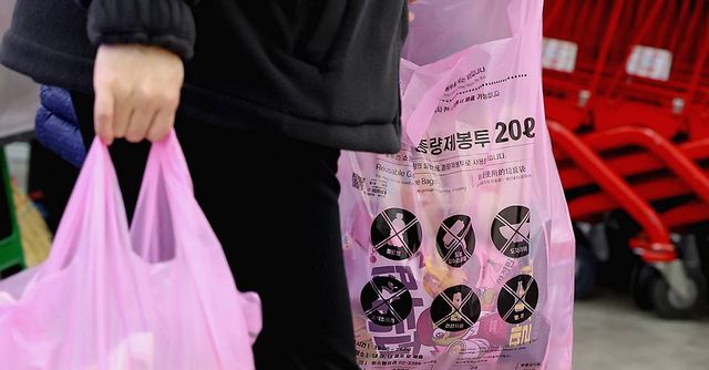지난 30일 서울 시내 한 대형마트에서 시민이 종량제 봉투에 물건을 담고 있다 / 뉴스1
