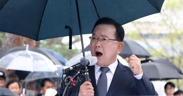 김부겸 전 국무총리가 30일 오후 대구 중구 2·28기념중앙공원에서 6·3지방선거 대구시장 출마를 선언하고 있다. / 뉴스1