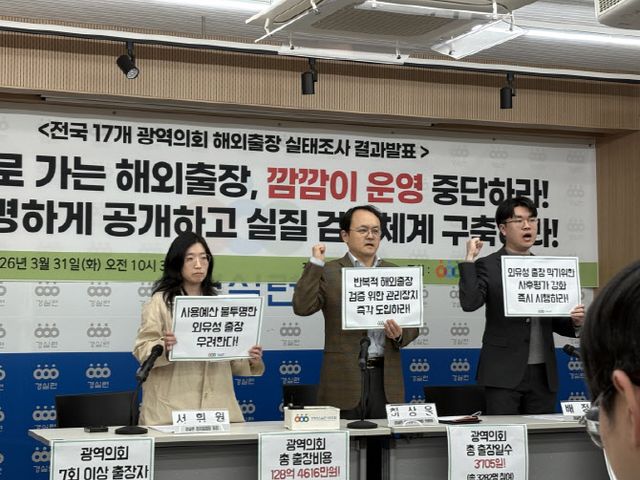 경제정의실천시민연합(경실련)은 31일 오전 서울 종로구 경실련 강당에서 기자회견을 열고 전국 17개 광역의회를 대상으로 민선 8기 출범 이후(2022년 7월 1일~2025년 12월 31일) 해외출장 실태를 전수조사한 결과를 발표했다.