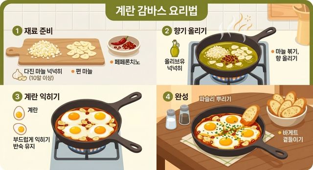 계란 감바스는 바쁜 일상 속에서도 간편하게 즐길 수 있는 메뉴다. 재료도 단순해 냉장고에 마땅한 식재료가 없을 때도 충분히 시도할 수 있다. 언젠가 맛과 가성비를 모두 챙길 수 있는 메뉴를 고민한다면, '계란 감바스'를 떠올려봐도 좋겠다.