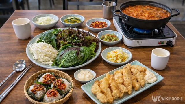 이곳의 주인공은 단연 ‘멸치쌈밥정식’이다. 큼직하고 고소한 멸치가 듬뿍 들어간 멸치찌개를 중심으로 멸치회무침, 멸치튀김, 제육볶음, 어리굴젓, 그리고 갓 지은 솥밥이 한 상 가득 차려진다.