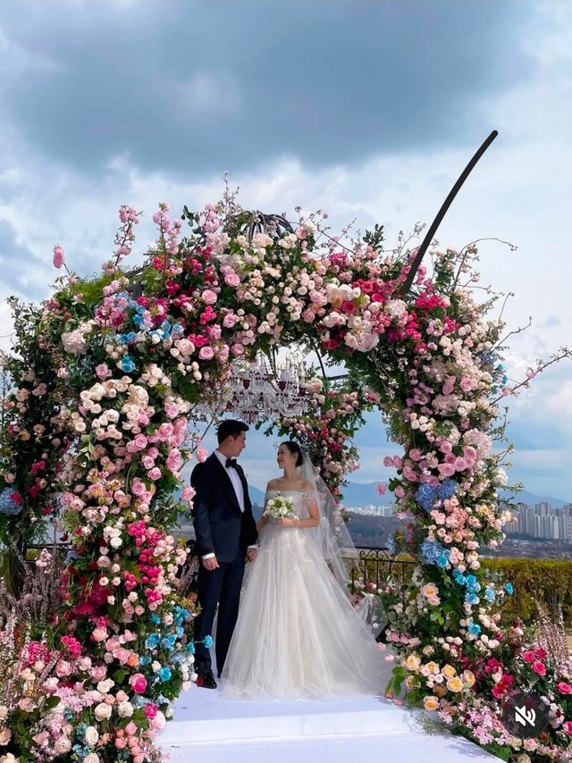 공개된 사진 속 두 사람은 황홀한 꽃장식과 꽃터널 앞에 서서 로맨틱한 분위기를 자아냈고, 손예진의 눈부신 자태가 특히 시선을 끌었다.
