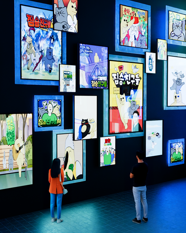 전시 공간은 디지털 기술과 아날로그 연출을 결합해 웹툰 속 장면을 실감 나게 재현했다. 1층 로비부터 다양한 웹툰 캐릭터들을 배치해 관람객이 캐릭터와 직접 마주할 수 있도록 구성했으며, 곳곳에 마련된 포토존과 재현 구역을 통해 몰입감을 극대화했다.