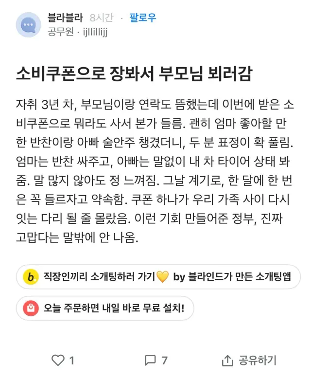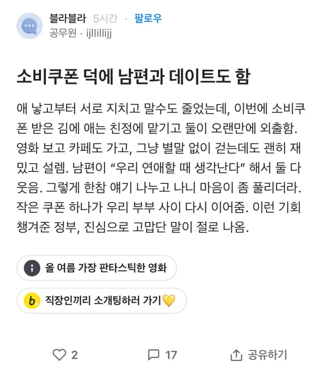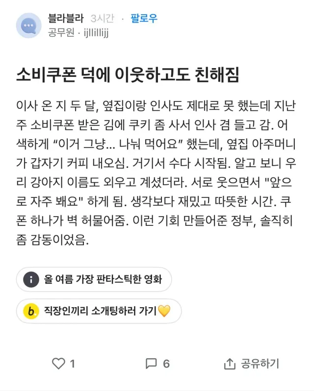 한놈이 지원금으로 주변 인간관계가 회복됐다고 딸딸이침
