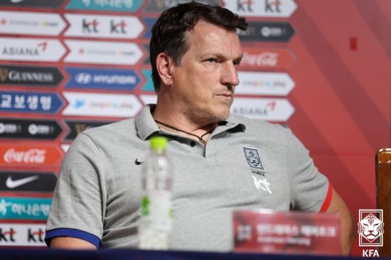 이런 가운데 홍명보호 직전에 한국 대표팀 정식 사령탑을 맡았던 클린스만 아래서 수석코치를 했던 헤어초크가 에른스트-하펠 경기장 잔디 위에 설치된 경기 전 사전 코멘터리 박스에 앉았다.
