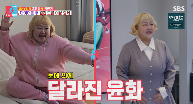 [스포츠동아 이정연 기자] 홍윤화가 40kg 감량 후 달라진 몸 상태를 고백하며 건강 이상 증세를 털어놨다.
