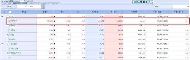 The stock closed at won 1,184,000, up won 73,000 (6.57%) from the previous day. In after-hours trading, however, gains moderated, with shares rising won 39,000 (3.51%) to won 1,150,000.